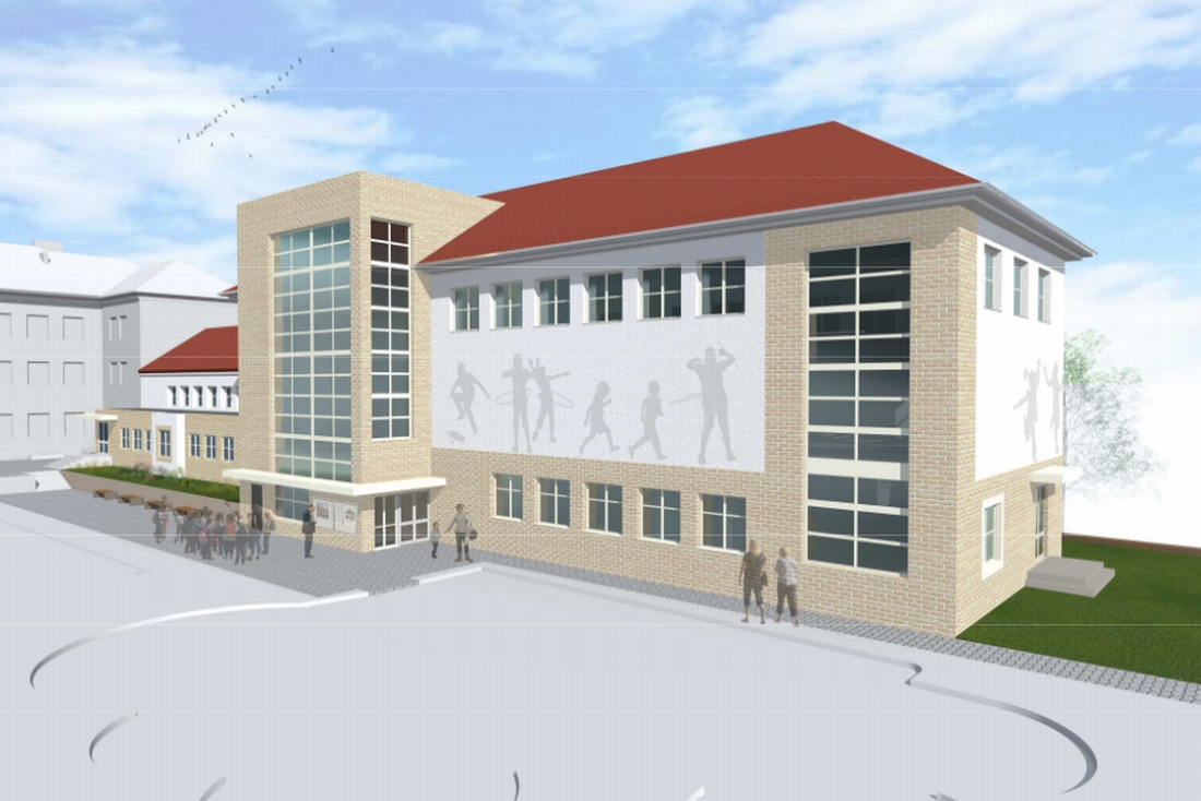 Zakres: Etap I – budowa nowego budynku szkoły trzykondygnacyjnego, niepodpiwniczonego (pow. użytkowa 921 m2, pow. zabudowy 614 m2, kubatura 8 101 m3).